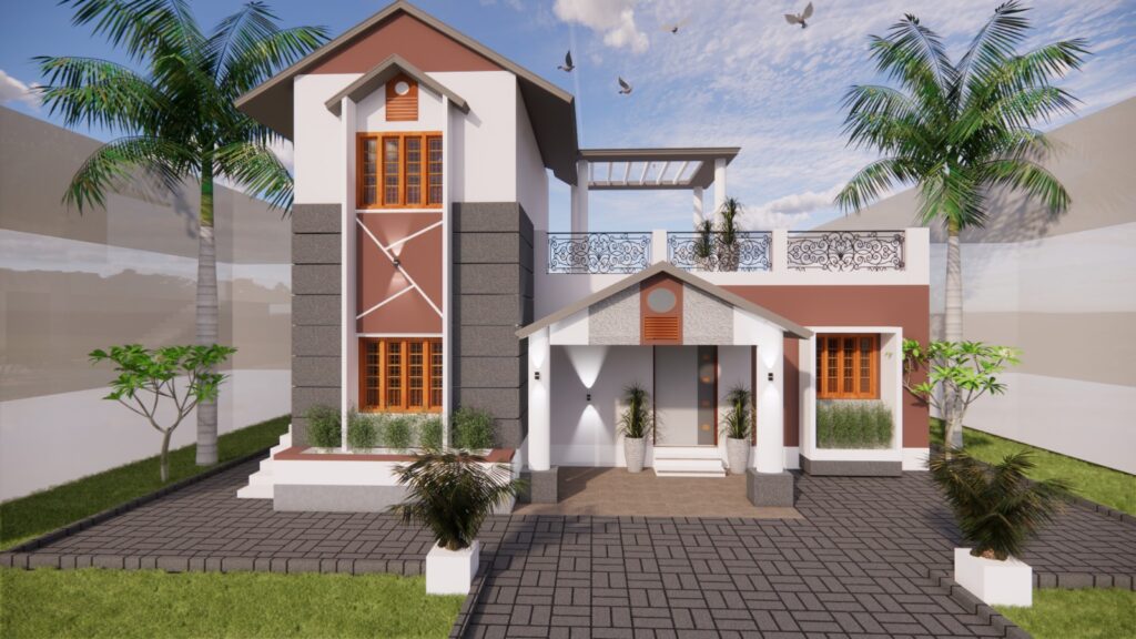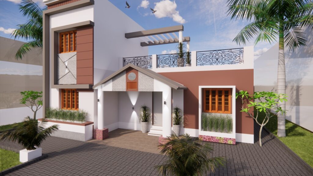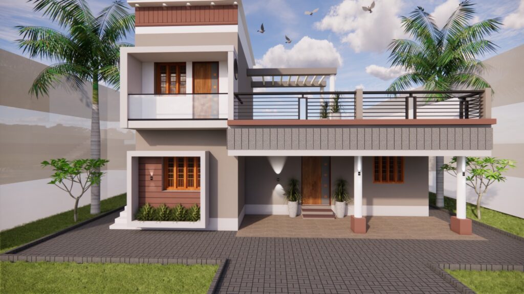 The Realistic illustration of a building’s exterior, created using advanced visualization techniques, allowing architects, and builders to see and refine the structure before construction begins.